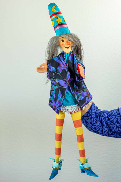 VELi-Handpuppen sind einzigartig. Jedes Gesicht wird individuell geformt, geschliffen, zwecks Härtung der Oberfläche mit Kunstharz überzogen und bemalt. Durch die Verwendung von passenden Stoffen, Farben und Haaren entsteht eine reiche Auswahl einmaliger Wesen. Sie finden bei uns ganz normale Leute, faszinierende Zauberwesen, Angehörige des Königshauses und besondere Handpuppentiere.