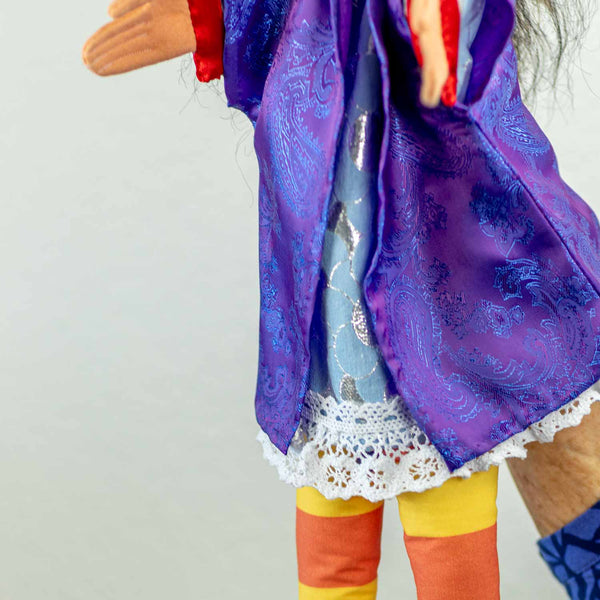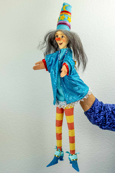 VELi-Handpuppen sind einzigartig. Jedes Gesicht wird individuell geformt, geschliffen, zwecks Härtung der Oberfläche mit Kunstharz überzogen und bemalt. Durch die Verwendung von passenden Stoffen, Farben und Haaren entsteht eine reiche Auswahl einmaliger Wesen. Sie finden bei uns ganz normale Leute, faszinierende Zauberwesen, Angehörige des Königshauses und besondere Handpuppentiere.