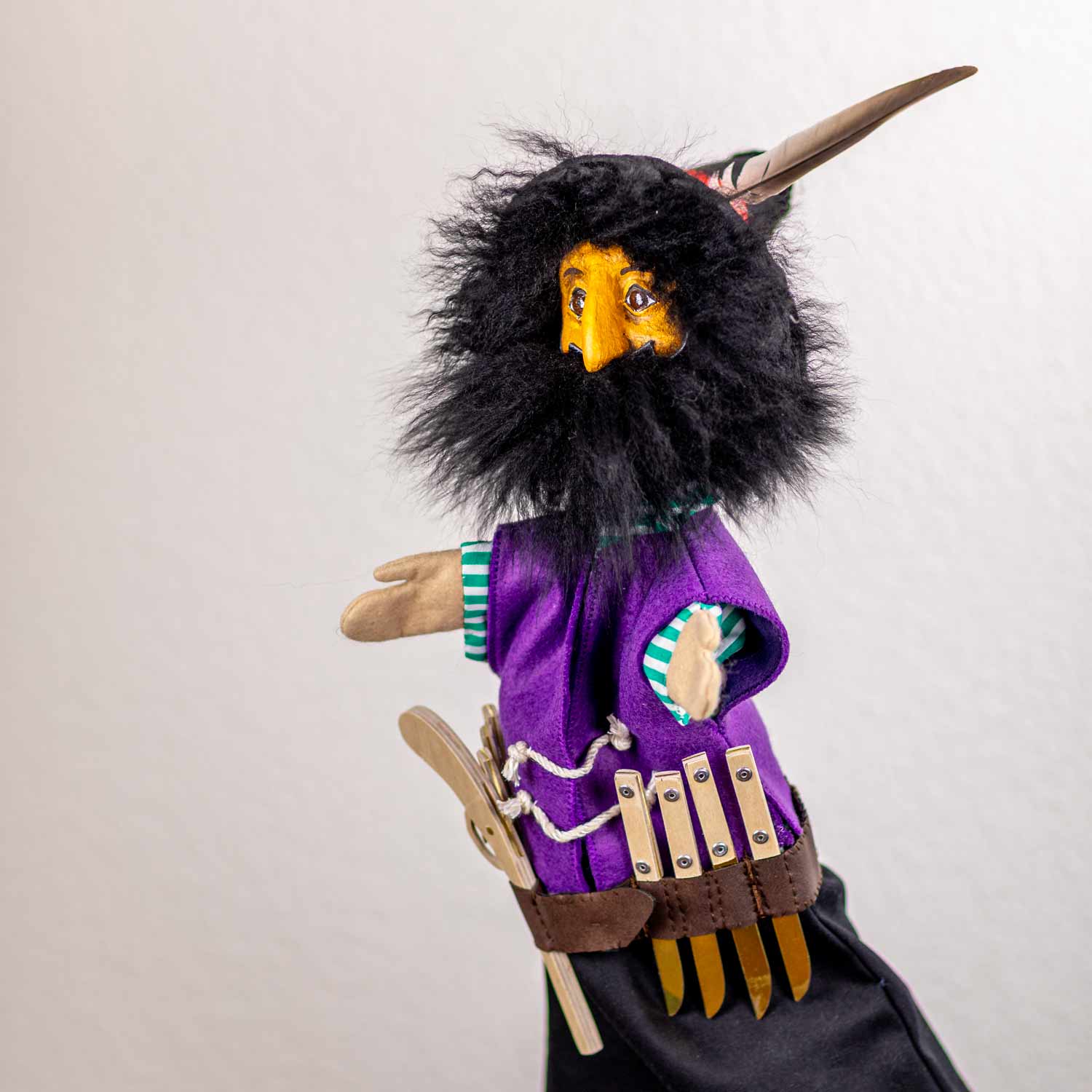 Wirklich: Der echte Räuber Hotzenplotz ist bei uns erhältlich mit 7 Messern und einer Pistole. Er trägt das Originalkleid: Grünweiss gestreiftes Hemd und violettes Gilet. Der Schlapphut mit Feder ist sein Markenzeichen!
